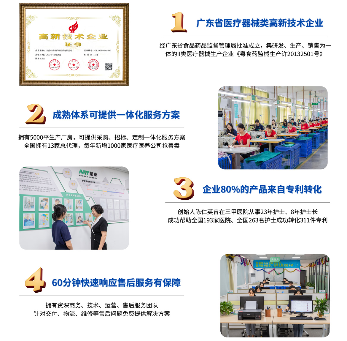 東莞市蒙泰護(hù)理用品有限公司成立于2012年,位于具有“世界制造業(yè)之都”的東莞,是一家集研發(fā)、生產(chǎn)、銷售為一體的廣東省醫(yī)療器械高新技術(shù)企業(yè)(證書編號(hào):GR202344005400)專注于4大醫(yī)療級(jí)護(hù)理產(chǎn)品。主要包括: