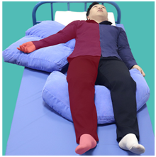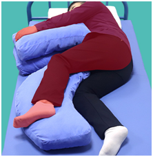 2、側(cè)臥位:上肢體位墊折疊與胸前,下肢屈膝放于下肢體位墊上。