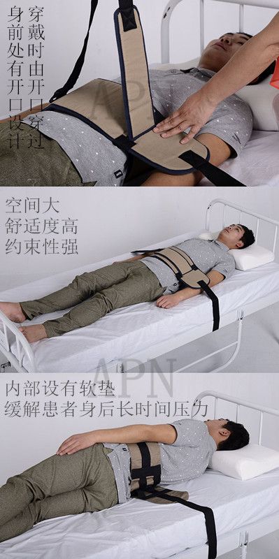 約束帶是一種保護病人安全的裝置,用于躁動病人有自傷或墜床的危險,治療需要固定身體某一部位時,限制其身體及肢體的活動。其使用目的可以分為:1、控制病人危險行為的發(fā)生,避免病人傷害他人或自傷。2、意識障礙、譫妄躁動病人防止墜床。3、對治療、護理不合作的病人,保證治療護理得以順利實施。
