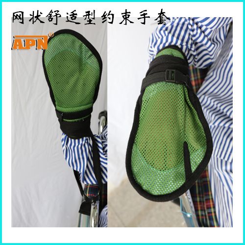 網(wǎng)狀舒適型:面料透氣度高,內(nèi)置彈性硬膠板,分為四指區(qū)和拇指區(qū)。兩面可透氣,病人不容易將手掌轉(zhuǎn)回正面亂拿物件。