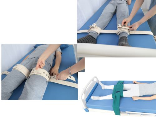 使用保護(hù)用具-磁控約束帶時,應(yīng)保持肢體及各關(guān)節(jié)處于功能位,要協(xié)助患者經(jīng)常更換體位,讓患者處于一個安全、舒適的位置,而且使用保護(hù)用具-磁控約束帶時,要先取得患者及其家屬的知情以及同意后,在有醫(yī)囑的情況下使用,使用保護(hù)用具-磁控約束帶可以先上鎖釘,然后把患者的約束部位置于保護(hù)用具-磁控約束帶的羊羔絨軟墊中,粘上魔術(shù)貼,固定松緊適宜,在這里要注意,羊羔絨軟墊與約束部位間可放置一指為宜,并定時松解,每2小時應(yīng)當(dāng)松解約束帶一次,注意觀察約束部位的血液的循環(huán)情況等。