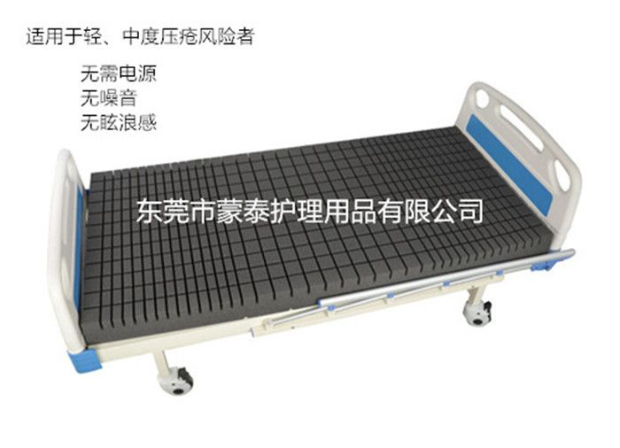 防壓瘡床墊的種類包括兩種:一種是壓力轉(zhuǎn)換型,也叫波動型,就是充氣床墊;一種是身體壓力分散型,也叫靜止型。壓力轉(zhuǎn)換型是采用氣囊支撐的,身體壓力分散型材質(zhì)比較多,有聚氨酯海綿類防壓瘡床墊、凝膠類防壓瘡床墊、水墊等幾種。壓力轉(zhuǎn)換型即氣墊床,目前在臨床應用較普遍,但因有些患者他們需要更好的休息,氣墊床有漏電風險,噪音大,可能讓人產(chǎn)生暈浪,有些不透氣。透氣噪音小的氣墊床價格較高,所以需要選用提升舒適睡眠的靜態(tài)防壓瘡床墊。
