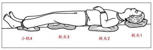 仰臥時(shí)如圖示:常用的壓瘡墊枕有頭枕,腰墊,膝關(guān)節(jié)墊,足跟墊。分別置于對(duì)應(yīng)的位置,墊在身體與床等接觸面的之間。
