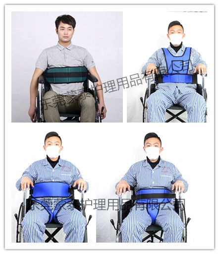 7.有認(rèn)知障礙的患者在使用輪椅、站立轉(zhuǎn)運(yùn)輔助器等需使用約束裝置。如輪椅安全帶、四肢約束帶等,輪椅安全帶中有一款約束背心式的,可以用于約束患者軀干,保持上身直立的狀態(tài),防止其從輪椅上跌倒、跌落、滑落等事情的發(fā)生。當(dāng)需要約束裝置時(shí)可以使用輪椅安全帶,協(xié)助照護(hù)人員。