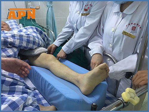 下圖為使用蒙泰護理產(chǎn)品下肢抬高墊護理中的醫(yī)護人員