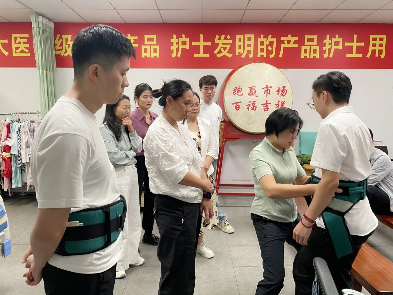 在蒙泰創(chuàng)始人陳仁英的陪同下,護(hù)士發(fā)明家團(tuán)隊(duì)參觀了蒙泰展廳,現(xiàn)場(chǎng)展示了上百款經(jīng)過(guò)臨床驗(yàn)證的護(hù)理輔具。這些源于臨床、用于臨床的創(chuàng)新產(chǎn)品,引發(fā)了護(hù)士發(fā)明家們的濃厚興趣。