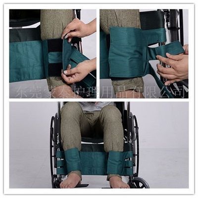 坐輪椅患者普遍存在身體功能障礙、易跌倒等情況,所以需要對(duì)小腿予以固定保護(hù)。使用小腿安全帶的時(shí)候先把安全帶粘合在輪椅上面,再對(duì)患者的小腿進(jìn)行固定??梢杂行П3肿喴蔚幕颊咄炔康墓潭ㄗ饔茫U匣颊叩陌踩?。