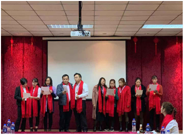 營銷中心的紅歌《我和我的祖國》,全體穿著整齊統(tǒng)一的服裝,帶上特有年味的紅圍巾,引來一陣陣掌聲。
