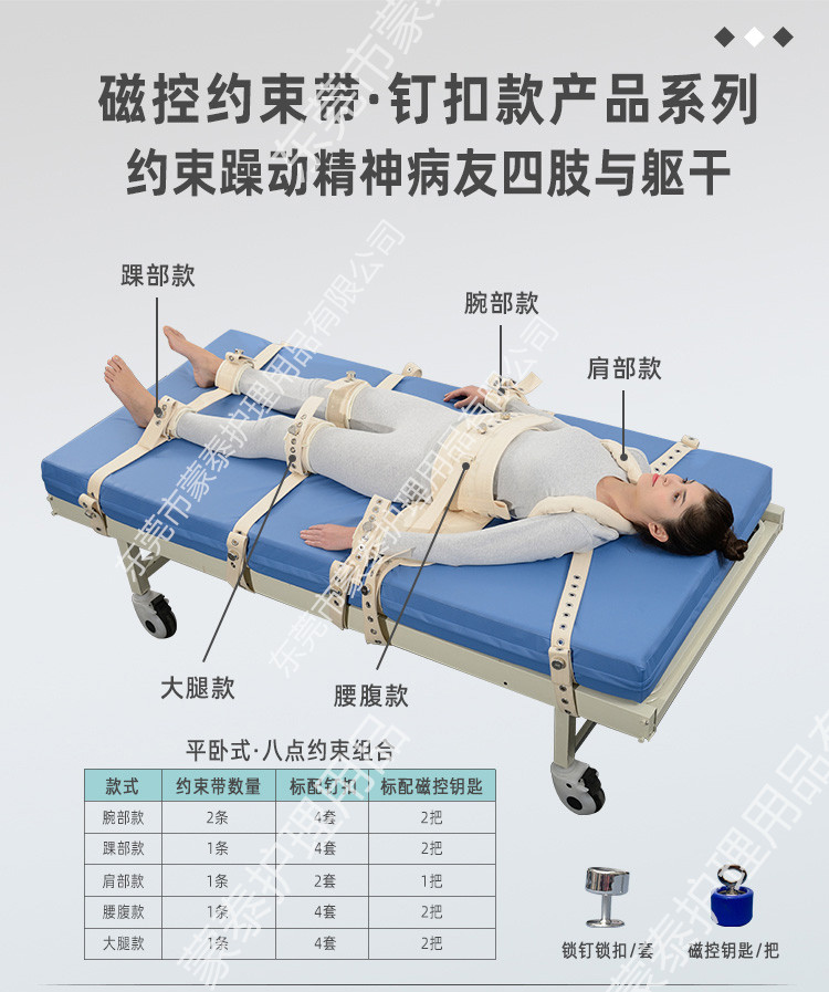 蒙泰研發(fā)的磁控約束帶在精神科的應(yīng)用中展現(xiàn)了多項(xiàng)顯著優(yōu)勢。首先,它采用磁控鎖設(shè)計(jì),使得醫(yī)護(hù)人員在對患者進(jìn)行約束時(shí),能夠輕松地通過磁控鑰匙實(shí)現(xiàn)輕松上鎖,開鎖,非授權(quán)人員無法打開,大大提高了操作的便捷性和安全性。這種快速調(diào)節(jié)的能力在緊急情況下尤為重要,因?yàn)樗试S工作人員迅速響應(yīng),確?;颊吆椭車藛T的安全。