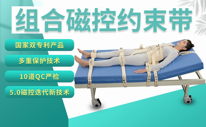 磁控約束帶對比傳統(tǒng)約束帶,更加人性化,皮膚接觸部位羊絨軟墊保護,約束后肢體活動范圍加大;更易被家屬接受;磁控鎖裝置降低自解掙脫率。截止到目前為止,已迭代至5.0磁控新技術。