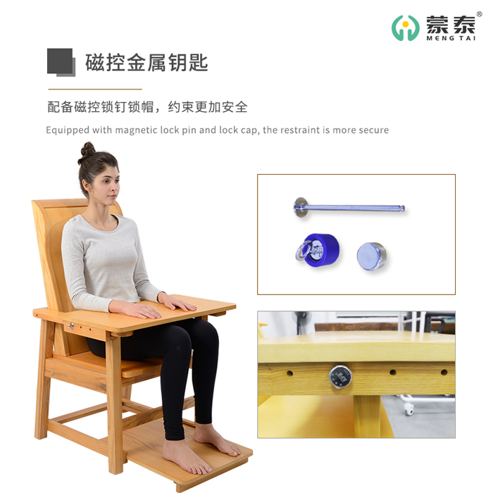 1.高效安全:蒙泰磁控約束椅采用磁控鎖技術(shù),方便快捷,安全可靠。它可以有效地限制患者的活動(dòng)范圍,降低意外事件的發(fā)生率。