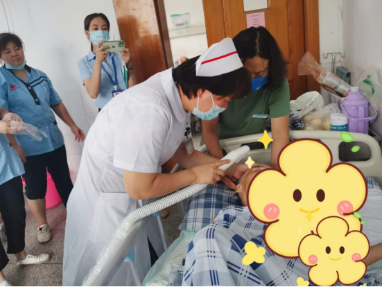 本次現場助浴教學,陳仁英親自示范教學,讓護工們熟練掌握了助浴機的操作方法,接受助浴的老人打出高分好評。羅偉華護士長說:“讓臨床患者和老人躺在床上就能舒舒服服洗個澡,我