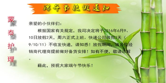 東莞市蒙泰護(hù)理用品有限公司端午節(jié)放假通知如下: