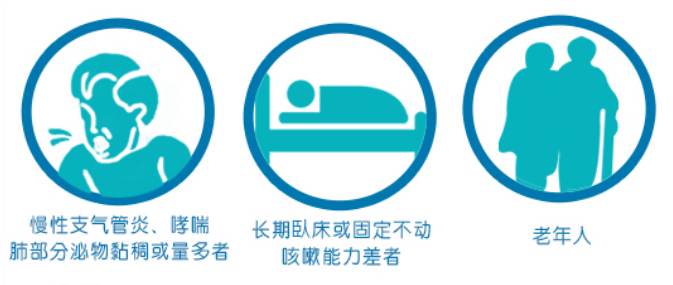 3、使用人群:用于慢性支氣管炎、哮喘肺部分泌物粘稠或量多者; 長 期臥床或固定不動(dòng)咳嗽能力差者;老年人等咳嗽機(jī)能差的人群。