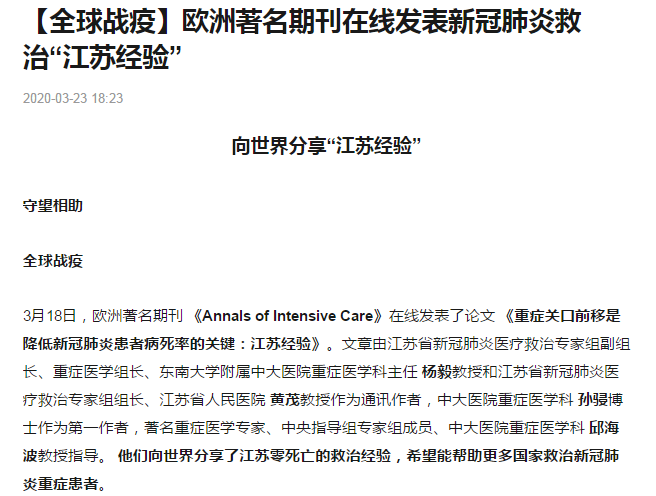 歐洲重癥期刊在線發(fā)表論文《重癥關(guān)口前移是降低新冠肺炎患者病死率的關(guān)鍵:江蘇經(jīng)驗》向世界分享我國江蘇零死亡的救治經(jīng)驗,里邊提到降低死亡率的重要途徑是及早采取強有力的干預(yù)措施包含“俯臥位通氣”。在江蘇省新冠肺炎病人中,嘗試了清醒俯臥位的治療,并發(fā)現(xiàn)清醒俯臥位可以明顯改善肺不均一性、降低氣管插管率。