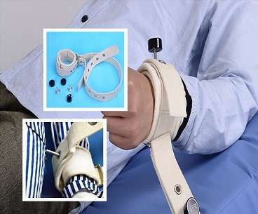 在輪椅靠背處墊一塊木板,使患者軀干保持伸展,臀部盡量坐在輪椅坐墊后方,雙上肢伸展位放在輪椅前桌上,或稍屈曲放于輪椅扶手上,前臂旋前,手指伸展。膝關(guān)節(jié)屈曲90°,雙腳平踏于地板上或輪椅腳踏上。中國康復(fù)研究中心北京博愛醫(yī)院神經(jīng)康復(fù)二科參考康復(fù)護(hù)理學(xué)良肢位的擺放姿勢,設(shè)計良肢位圖示標(biāo)識、體位標(biāo)識枕和坐位手掌標(biāo)識,提醒患者體位擺放的正確方式,提高了患者良肢位擺放的依從性。設(shè)計內(nèi)容如下。