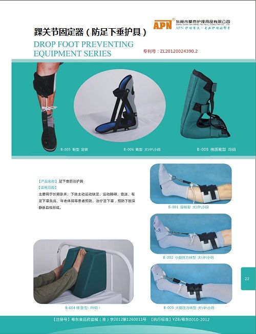 由此可見(jiàn)防足下垂護(hù)具可以方便,有效的在預(yù)防足下垂中起到良好的作用。在此為大家推薦蒙泰護(hù)理研發(fā)生產(chǎn)的踝關(guān)節(jié)固定器(防足下垂護(hù)具),該系列產(chǎn)品主要用于長(zhǎng)期臥床、下肢主動(dòng)運(yùn)動(dòng)缺乏、運(yùn)動(dòng)障礙、昏迷、有足下垂先兆、年老體弱等患者預(yù)防、治療足下垂,預(yù)防下肢深靜脈血栓形成。在防足下垂的預(yù)防中可起到利人利己的重大作用。