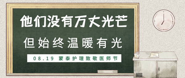 2020年8月19號,也就是今年,是第三個中國醫(yī)師節(jié),但是由于2020年是特殊的一年,而這一年,讓中國醫(yī)師節(jié)更顯深意,大疫當(dāng)前有大醫(yī),大疫當(dāng)前顯大愛,是這群可愛的“天使”們,身穿白衣,手持針劑,逆行而上,為愛奔赴;是他們用大無畏的精神,守護(hù)了國家、民眾,他們就是守護(hù)我們的無畏勇士。值此8月19中國醫(yī)師節(jié),蒙泰護(hù)理攜手全體員工,祝所有醫(yī)護(hù)工作者節(jié)日快樂,愿你們都能被歲月溫柔以待。