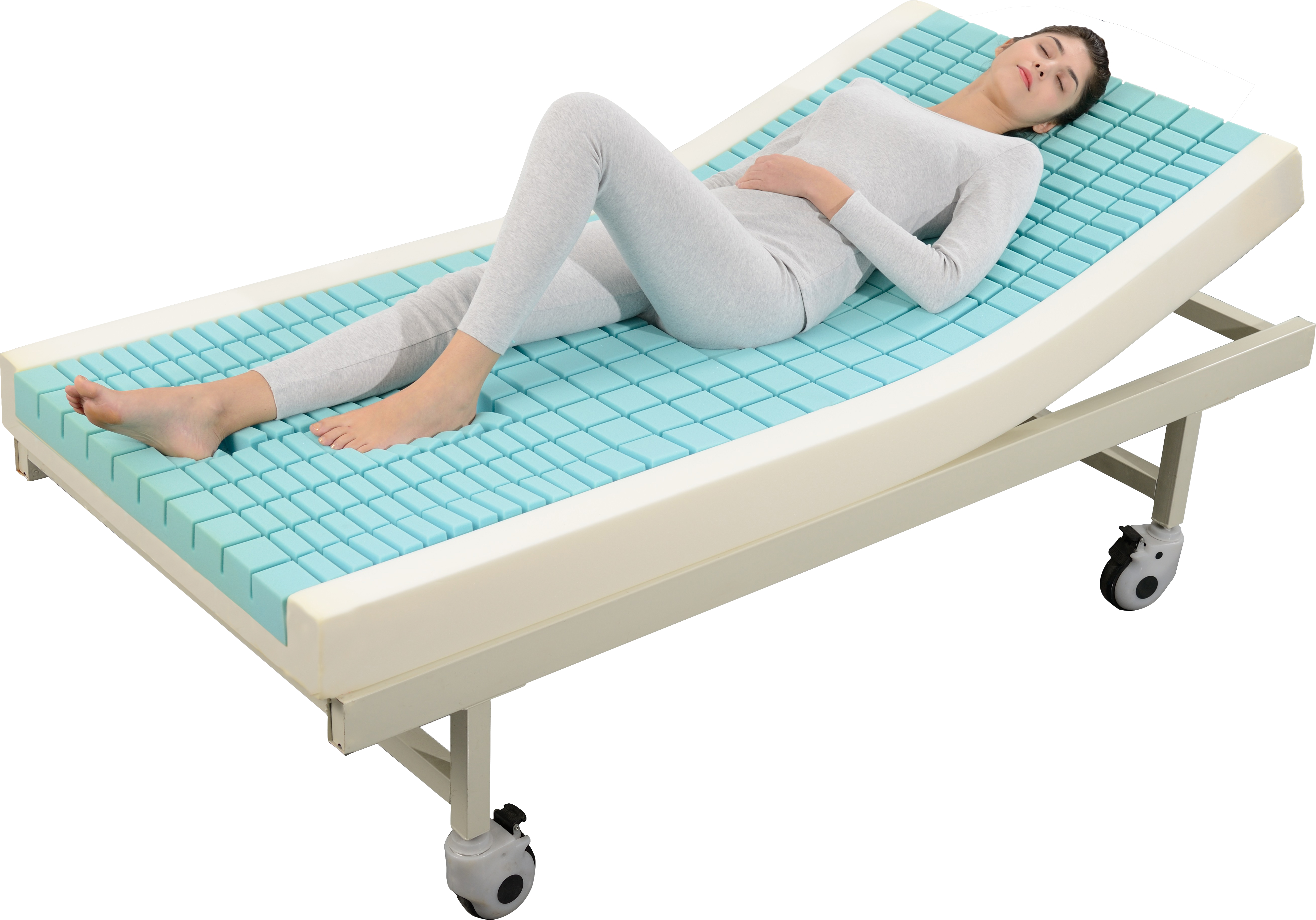 相比氣墊床,靜態(tài)防褥瘡床墊的優(yōu)點(diǎn)主要在準(zhǔn)備過程簡(jiǎn)單,無(wú)需充電,無(wú)需調(diào)節(jié)充氣泵的壓力和每班檢查床墊充氣情況;靜態(tài)防褥瘡床墊無(wú)噪音,無(wú)眩浪感,用者能放松,有利于用者安穩(wěn)入睡。