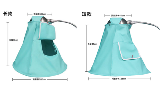 3、燈罩開(kāi)口向下罩住原烤燈燈帽即可,視患者病情以及室溫選擇是否粘貼開(kāi)窗,根據(jù)傷口大小通過(guò)兩側(cè)魔術(shù)貼粘貼位置及底部活動(dòng)的鋼絲圈靈活調(diào)整照射周徑大小。