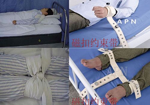 首先我們來說普通類的約束帶:優(yōu)點(diǎn):使用廣泛,成本低,只需要普通的布條就可以制成。缺點(diǎn):容易被患者掙脫,會使患者的約束部位受傷,使用不方便,容易被非授權(quán)人員解開。
