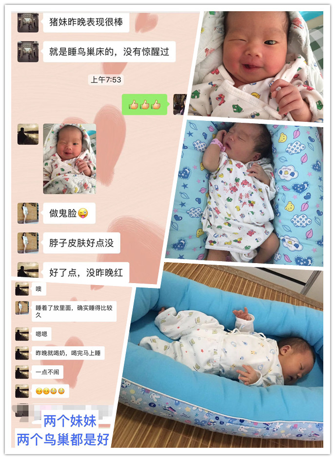【轉(zhuǎn)發(fā)好友清清的朋友圈】出生第三個(gè)晚上的羅千金昨晚吸完奶后就放在鳥巢里面睡,沒驚醒過,不吵不鬧。一大早羅千金在做鬼臉。以下是我們家的群聊,小妹妹兩夫妻開心死了。大妹妹早就把小余兒放在鳥巢獨(dú)自睡,余兒很快習(xí)慣鳥巢,睡得香而久??吹絻蓚€(gè)妹妹坐月子能休息好,奶水足,姨BB們喝著母乳,安穩(wěn)睡覺覺,當(dāng)大家姐欣慰滿滿!蒙泰鳥巢床,不僅解放了自己解放家人,關(guān)鍵是寶寶能吃能睡不吵鬧,健康成長!