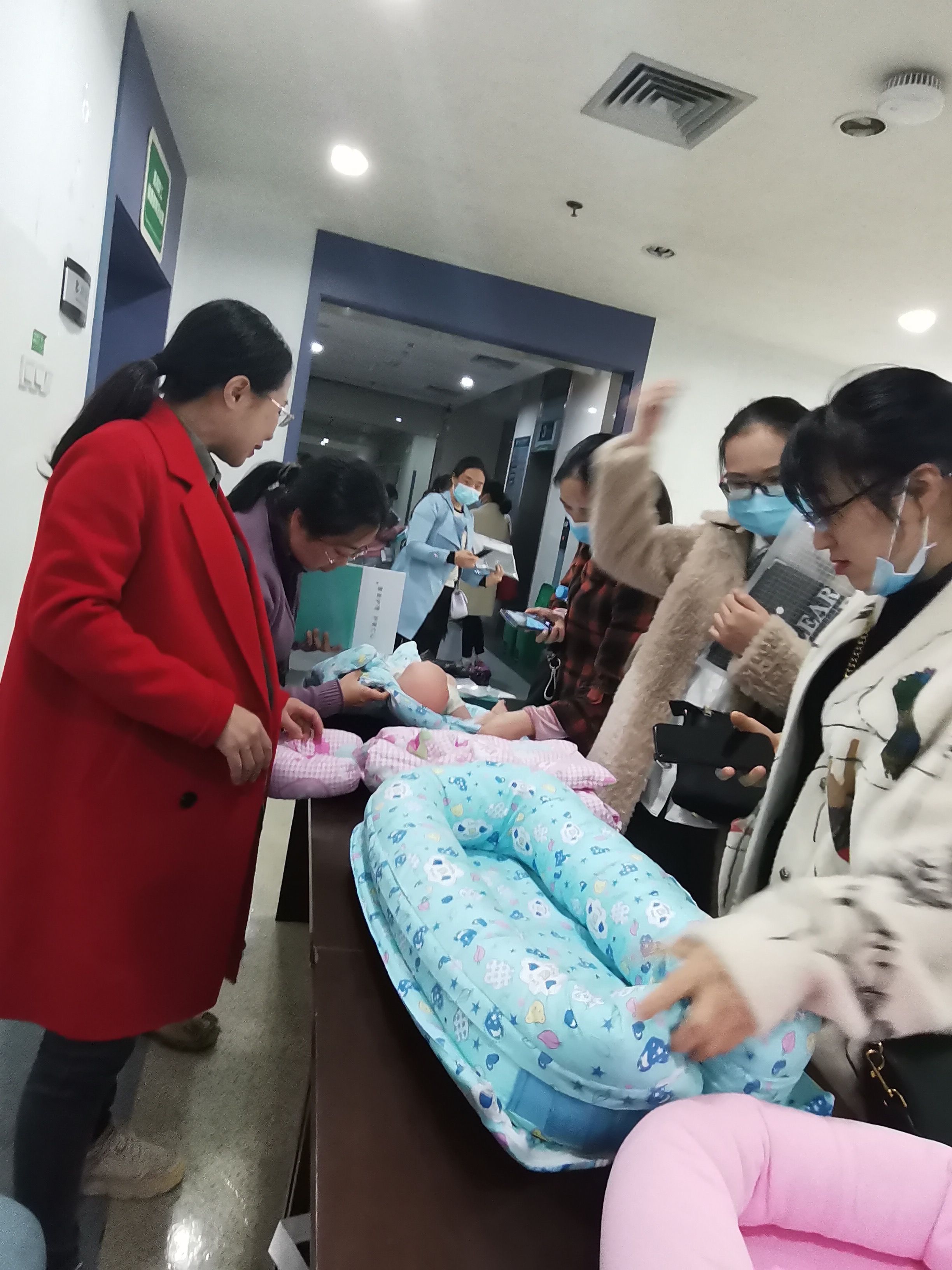 這次展出的鳥巢護理棉包包樣品也是經(jīng)過林梅老師臨床試用后反復(fù)改進成型的樣品,兩翼呈直角往里卷,在后立體塑形不能軟塌塌的,尾巴處左旋右轉(zhuǎn)后放置下方,形成一體化的設(shè)計,這樣寶寶很舒服睡的踏實更有安全感,減少了早產(chǎn)兒頭顱變形發(fā)生率及體位不良率,也減少了護理人員的工作量!