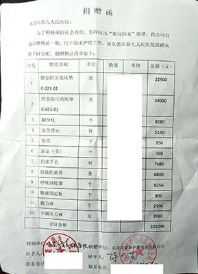 2020年2月7日下午,東莞蒙泰護(hù)理產(chǎn)學(xué)研平臺創(chuàng)始人陳仁英向東莞市第九人民醫(yī)院捐贈了價(jià)值10萬元的醫(yī)療物資,為防控新冠病毒疫情貢獻(xiàn)一份力量。
