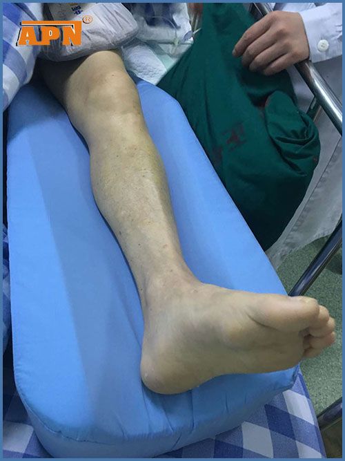 好心的護(hù)士給康伯準(zhǔn)備了兩個(gè)枕頭作為抬高患肢用,但兩個(gè)枕頭疊起來(lái)會(huì)滑倒,且一不小心患腿就掉到床面了,有時(shí)會(huì)致傷口痛得說(shuō)不出話來(lái)。