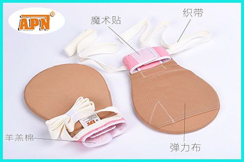 彈力型約束手套(波板)材質(zhì)是由:錦綸、魔術(shù)貼、羊羔棉、織帶進(jìn)行加工而成的,護(hù)套由高彈性、有一定光滑度的棉質(zhì)布料制成,吸汗性強(qiáng),手腕處加有軟墊,避免因雙手活動(dòng) 時(shí) 摩擦而引起的皮膚受損。