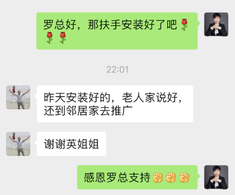 通過視頻通話,陳仁英了解到了羅總親戚家衛(wèi)生間的布局,然后根據(jù)實(shí)際情況給出了解決方案:2個(gè)扶手和1張防滑洗澡椅。