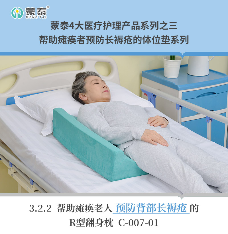 長期臥床的老人,因不能主動(dòng)翻身,臀部、背部壓迫的時(shí)間久了,就會(huì)影響血液循環(huán),形成壓力性損傷,同時(shí)還可能造成壓瘡風(fēng)險(xiǎn)。勤翻身是有效避免褥瘡產(chǎn)生的最直接的方法。因此,選擇一款合適的翻身枕極為重要,幫助臥床老人定時(shí)側(cè)臥,不僅可以分散這些部位的壓力,預(yù)防壓力性損傷的發(fā)生,還可以避免壓瘡,減輕照護(hù)者的工作量。