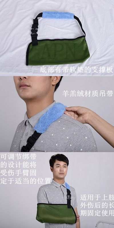 蒙泰護(hù)理的網(wǎng)布上肢吊帶更人性化的一點(diǎn)就是吊帶采用羊羔絨材質(zhì)制作,羊羔絨的特點(diǎn)在于:1、外觀清淡爽潔,具有良好的透氣型和懸垂性。2、質(zhì)地柔軟、輕薄透明,手感滑爽富有彈性。3、物理性能好,纖維強(qiáng)度高,耐磨。4、化學(xué)性能好,抗蟲蛀、抗霉菌。所以這樣的吊帶不僅提高了舒適感也更好的預(yù)防滑落,不會(huì)使患者皮膚與帶身直接接觸造成壓迫或擦傷。還有就是吊帶上有調(diào)節(jié)裝置,可根據(jù)需要調(diào)節(jié)長(zhǎng)短,并且方便穿戴,不會(huì)因?yàn)榇┐鲿r(shí)過緊而使患者做過多的動(dòng)作讓患者感到不適,有了調(diào)節(jié)裝置完全可以先將吊帶調(diào)長(zhǎng)調(diào)寬,穿戴好后再將用裝置調(diào)節(jié)合適長(zhǎng)度即可。