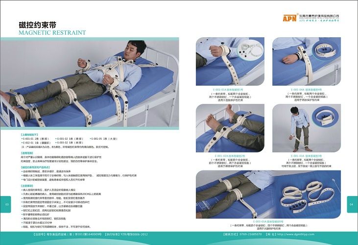 安全性高:傳統(tǒng)約束帶可被患者解開(kāi)或被其他人解開(kāi),不但沒(méi)能起到約束作用,約束帶本身還會(huì)成為危險(xiǎn)物品,例如自縊,逃跑等等。磁控約束帶有專用磁性鎖,只有專用鑰匙能打開(kāi),安全系數(shù)顯著提高。其次,磁控帶材質(zhì)使用上更結(jié)實(shí),并配有棉墊,對(duì)患者約束后腕部及肢血運(yùn)更加有益。