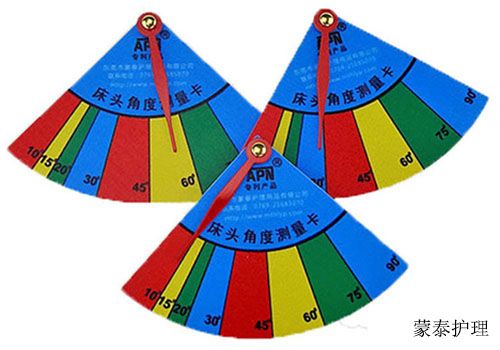 曾經(jīng)一位APN(資深護(hù)理專家)說過,評價(jià)一家醫(yī)院的護(hù)理質(zhì)量如何,就看科室的病床的病頭搖得有多高,可見床頭搖高的角度的重要性,如何有快速判斷床頭搖高的角度是否符合病人病情需要,是擺在護(hù)理人員面前一個(gè)難點(diǎn)。不著急,蒙泰護(hù)理公司生產(chǎn)的APN角度顯示卡,就能幫到您!