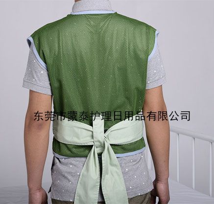 網(wǎng)狀安全背心創(chuàng)新的四帶設(shè)計(jì),輪椅上可固定件不,防止患者前傾跌倒,床上可放置患者坐起,翻出床欄等危險(xiǎn)動(dòng)作。