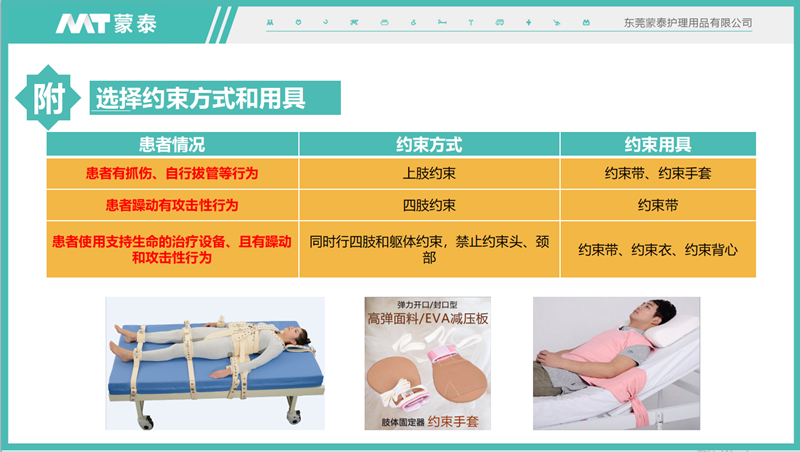 第二個環(huán)節(jié)通過約束指針、場景、部位等探討約束工具的使用。蒙泰護理作為護理用品的生產(chǎn)廠家,這個環(huán)節(jié)算是蒙泰護理的主場了。有使用于身體約束四肢約束帶、肩部約束帶、腰腹部約束帶等,對于精神患者或躁動患者身體約束有磁控約束帶,用于防拔管約束護理的約束手套,針對壓瘡預(yù)防的靜態(tài)防壓瘡海綿床墊,根據(jù)老師們的疑問蒙泰小伙伴一 一作了詳細解答。為了更好的幫助臨床了解蒙泰護理用具,會后蒙泰推出約束工具體驗接龍,歡迎老師參與。