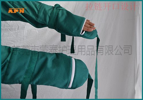 蒙泰護(hù)理生產(chǎn)的這款安全衣采用了雙層加厚布料,材質(zhì)更加軟和。手部拉鏈開(kāi)合的設(shè)計(jì),可達(dá)到透氣和隨時(shí)觀察患者手部情況,采用了強(qiáng)抗拉力棉質(zhì)布料剪裁而成,中間留空設(shè)計(jì)能在約束時(shí)形成簡(jiǎn)易活結(jié),病人在躁動(dòng)情況下越掙扎越緊,從而起到更好的約束效果。