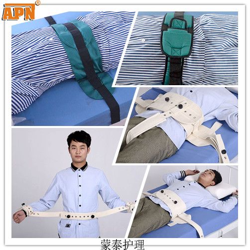 精神病患者在精神癥狀的影響下,會(huì)產(chǎn)生興奮,如:幻覺(jué),幻聽(tīng),幻想,自殺,攻擊,等傷人行為。為了確?;颊咦陨?、周?chē)藛T和環(huán)境的安全,為確保護(hù)理,治療的效果,使用醫(yī)用約束帶是精神科護(hù)理主要手段之一。 醫(yī)用約束帶使用約束方法有: