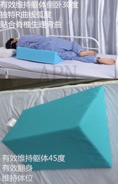 翻身枕可以在病人翻身的時候起支撐輔助作用,并分擔了護理工作的工作量,在應用中也影響其功能體位和治療體位,方便協(xié)助翻身,預防壓瘡的發(fā)生。蒙泰護理專為翻身防壓瘡研制的R型翻身枕和三角枕,獨特的曲線設計貼合人體,有效維持側位。