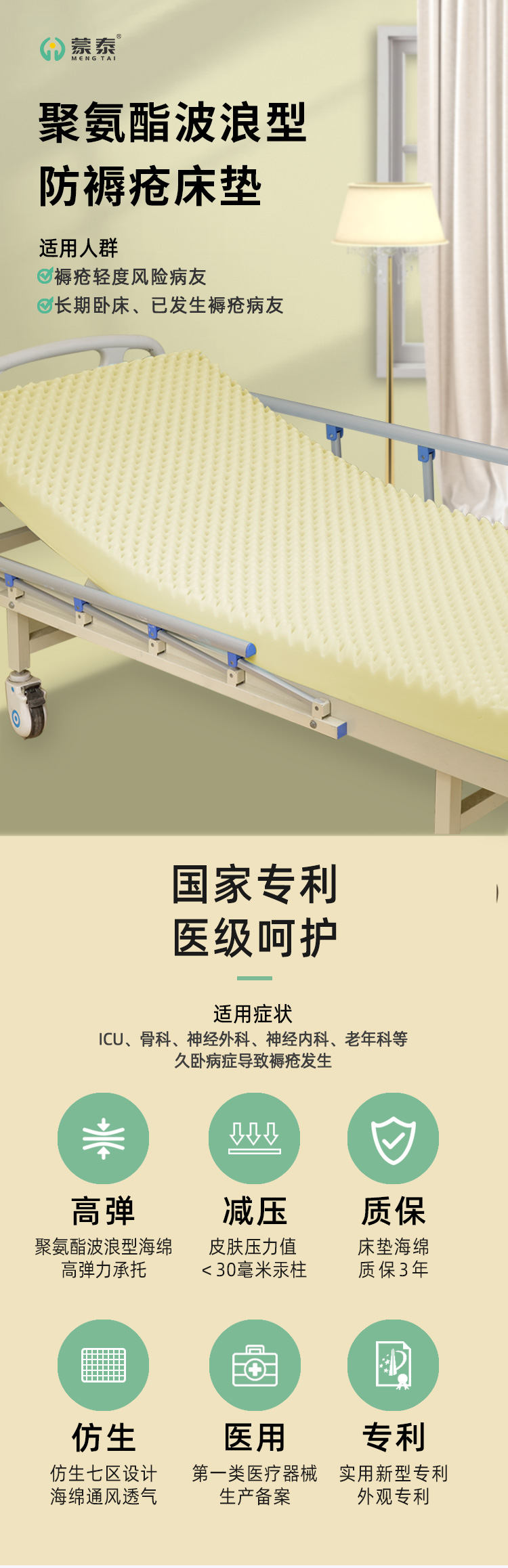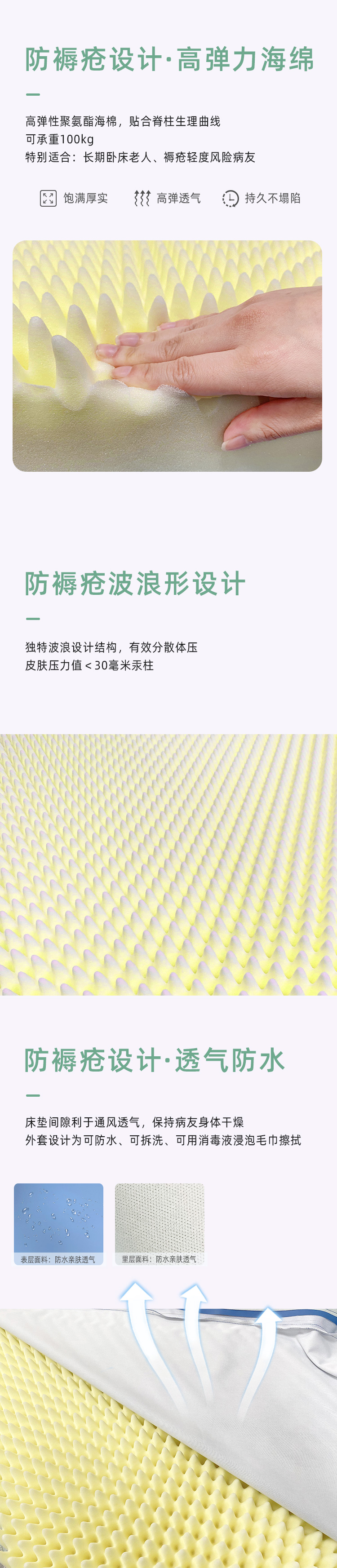 幫助輕度壓瘡風(fēng)險者或手腳能動但沒有力氣獨(dú)自下床活動的長者預(yù)防長褥瘡的靜態(tài)防褥瘡床墊