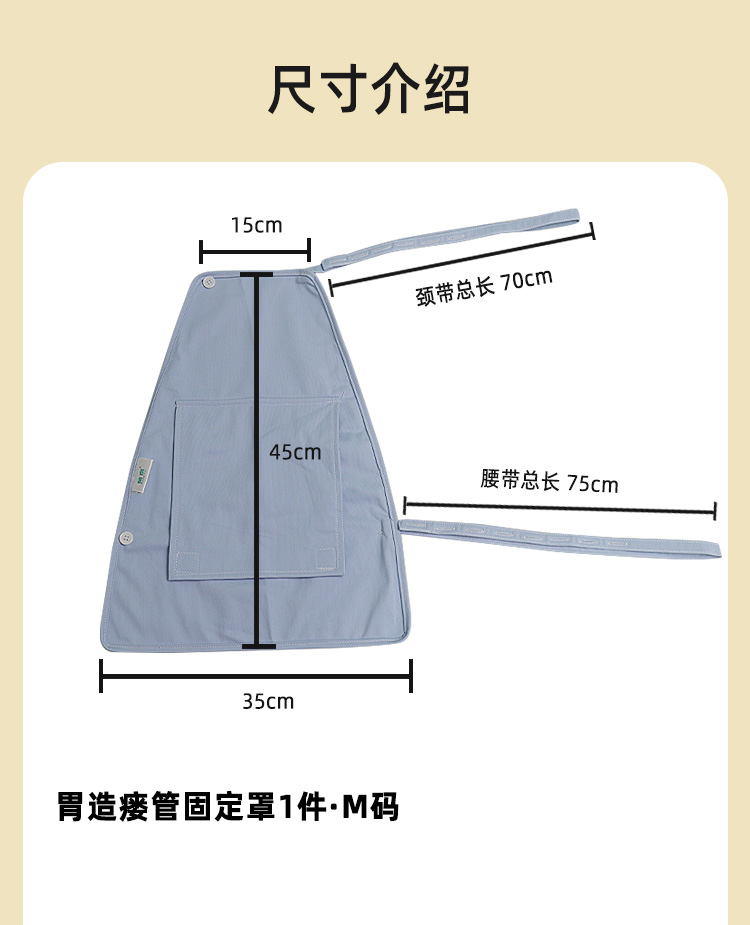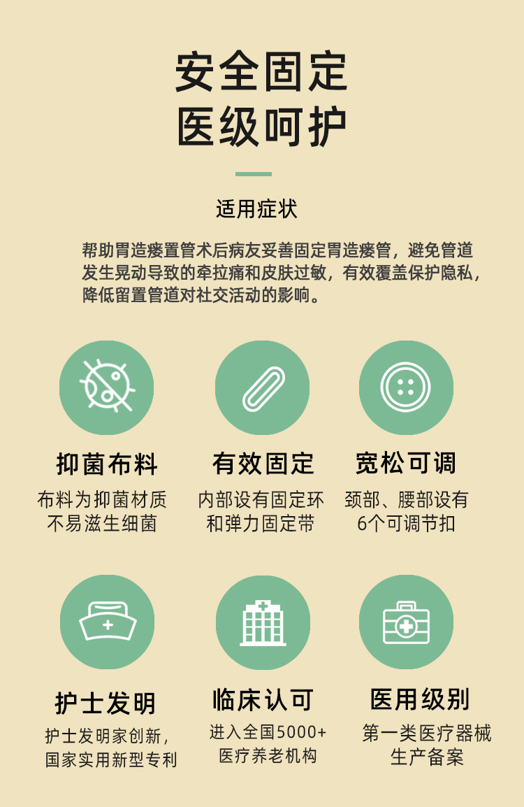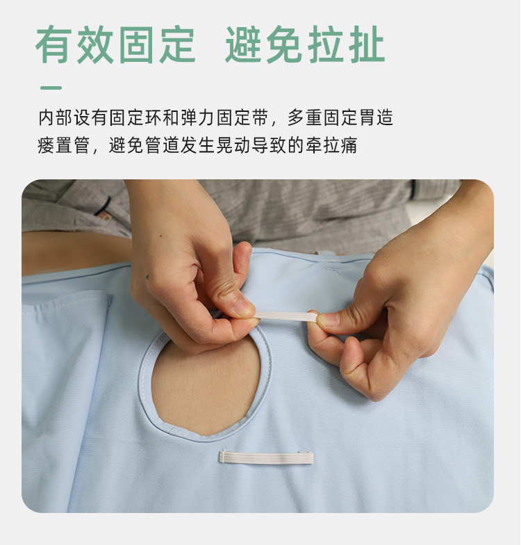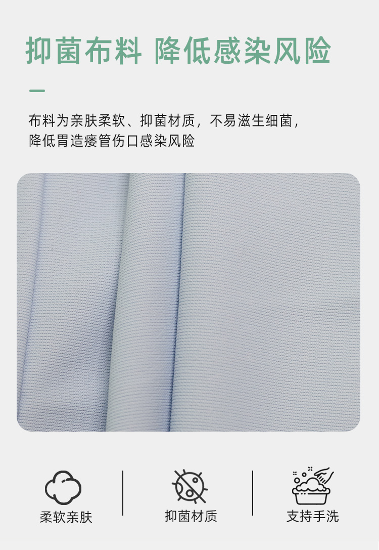 布料為親膚柔軟、抑菌材質(zhì),不易滋生細菌,降低胃造瘺管傷口感染風(fēng)險。
