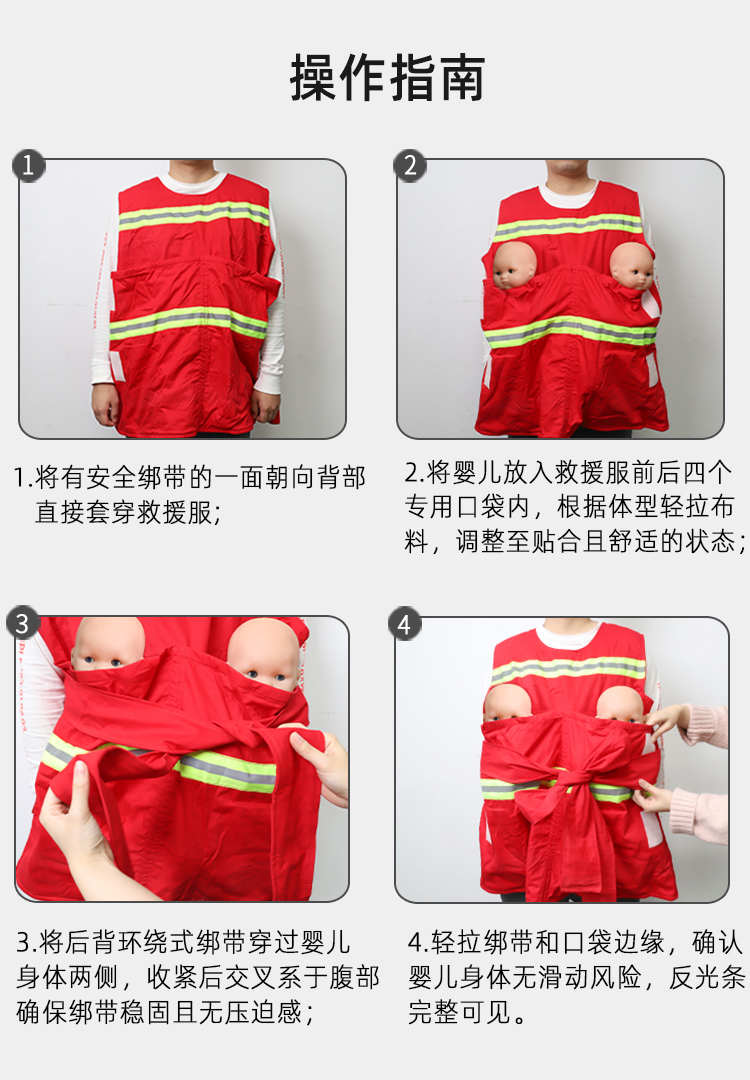 嬰兒應(yīng)急救援服 幫助醫(yī)護(hù)人員在緊急災(zāi)害發(fā)生時(shí),快速且安全地一次性轉(zhuǎn)移多名嬰兒