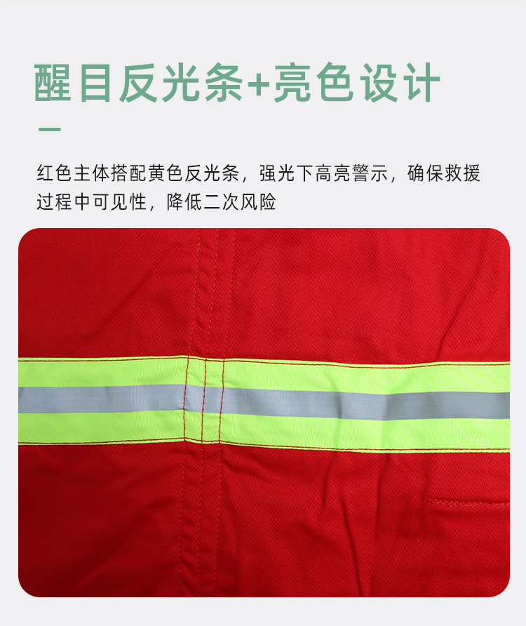 紅色主體搭配黃色反光條,強(qiáng)光下高亮警示,確保救援過(guò)程中可見(jiàn)性,降低二次風(fēng)險(xiǎn)。