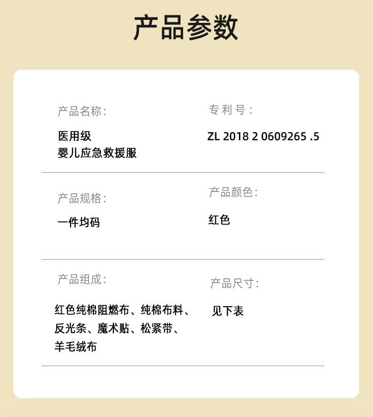 采用紅色純棉阻燃布,可以在緊急情況下有效保護(hù)醫(yī)護(hù)人員以及嬰幼兒。