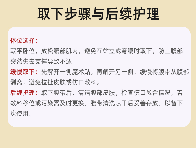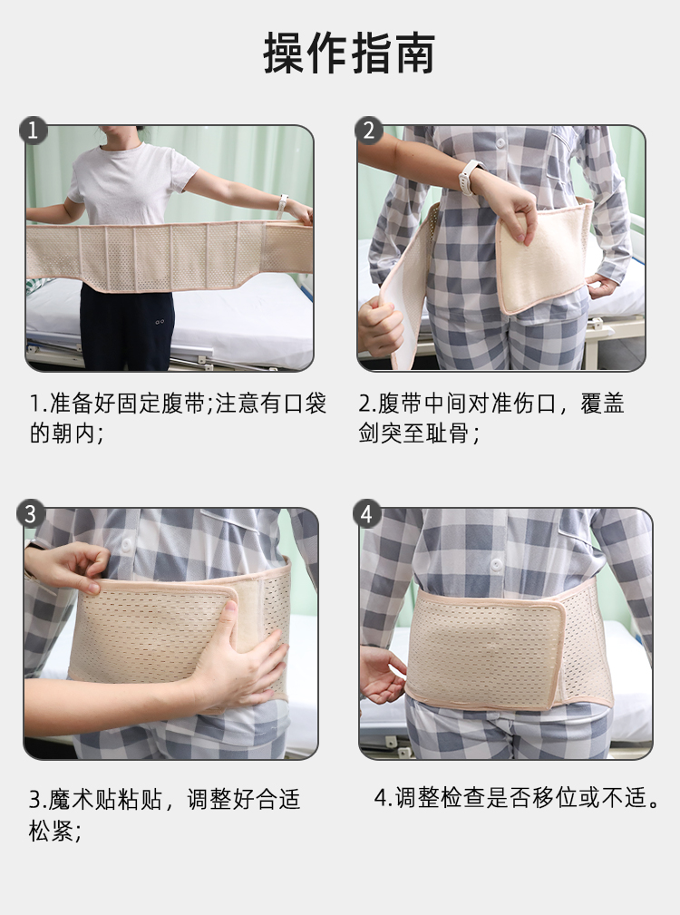 產(chǎn)品作用:幫助術(shù)后患者穩(wěn)固腹部傷口,固定敷料減輕術(shù)后疼痛,輔助康復(fù)恢復(fù)
