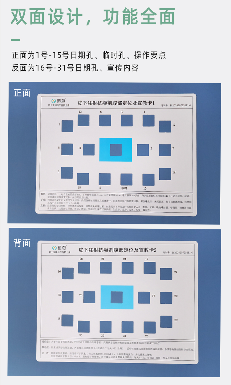 正面為1號-15號日期孔、臨時孔、操作要點(diǎn),反面為16號-31號日期孔、宣教內(nèi)容