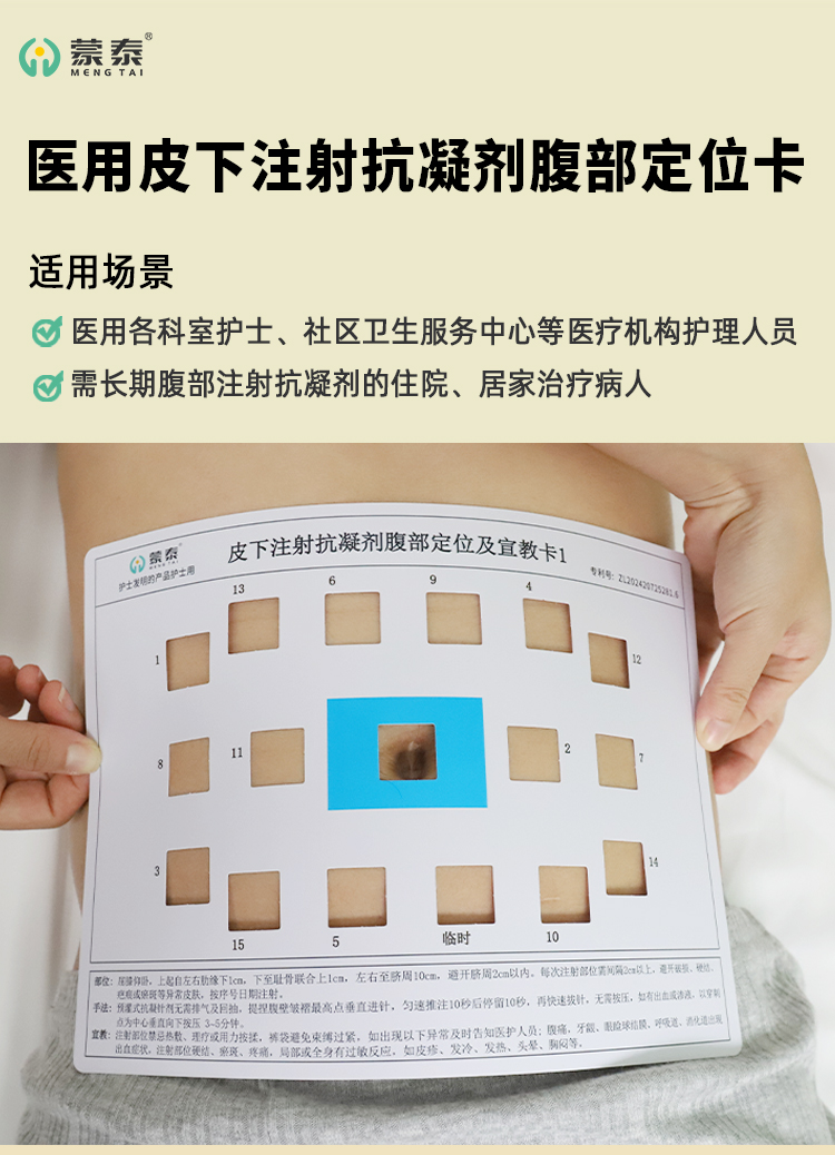 醫(yī)用皮下注射抗凝劑腹部定位卡 護(hù)士專利轉(zhuǎn)化產(chǎn)品 蒙泰廠家生產(chǎn) 招商